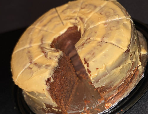 Every It Spells Good pound cake is made with butter, flour, sugar, and eggs. We mix the ingredients together with perfection to deliver a flavorful, moist, and dense cake to you. The Hershey's Cocoa used for this cake is just the right amount to make this chocolate cake divine. We top this cake with either white icing or caramel icing. It's your choice! You won’t be disappointed.