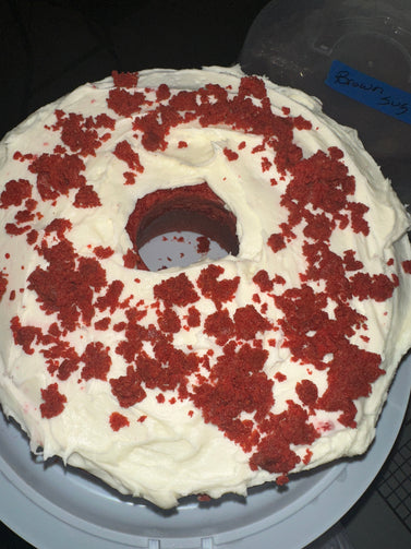 Every It Spells Good pound cake is made with butter, flour, sugar, and eggs. We mix the ingredients together with perfection to deliver a flavorful, moist, and dense cake to you. The infusion of the chocolate and the cream makes this beautiful red cake tender and light. Standard white icing glaze or you can add the cream cheese frosting for just the right topping that makes this cake supreme. Customers who require shipping should select 2 day shipping or faster.