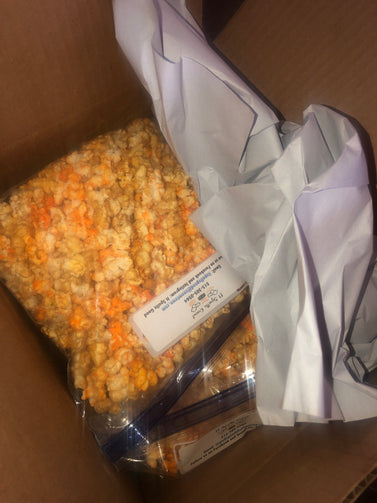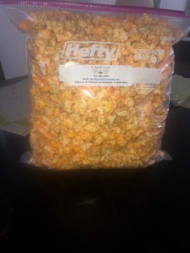 It Spells Good popcorn has often been compared to that very popular midwest popcorn store. Our delicious caramel corn and cheddar popcorn is made with real butter, brown sugar, and cheddar cheese. We make it in small batches and make sure that each batch is made with perfection. You won't be disappointed. (Can only be shipped within the state of Ohio, per Ohio Department of Agriculture)